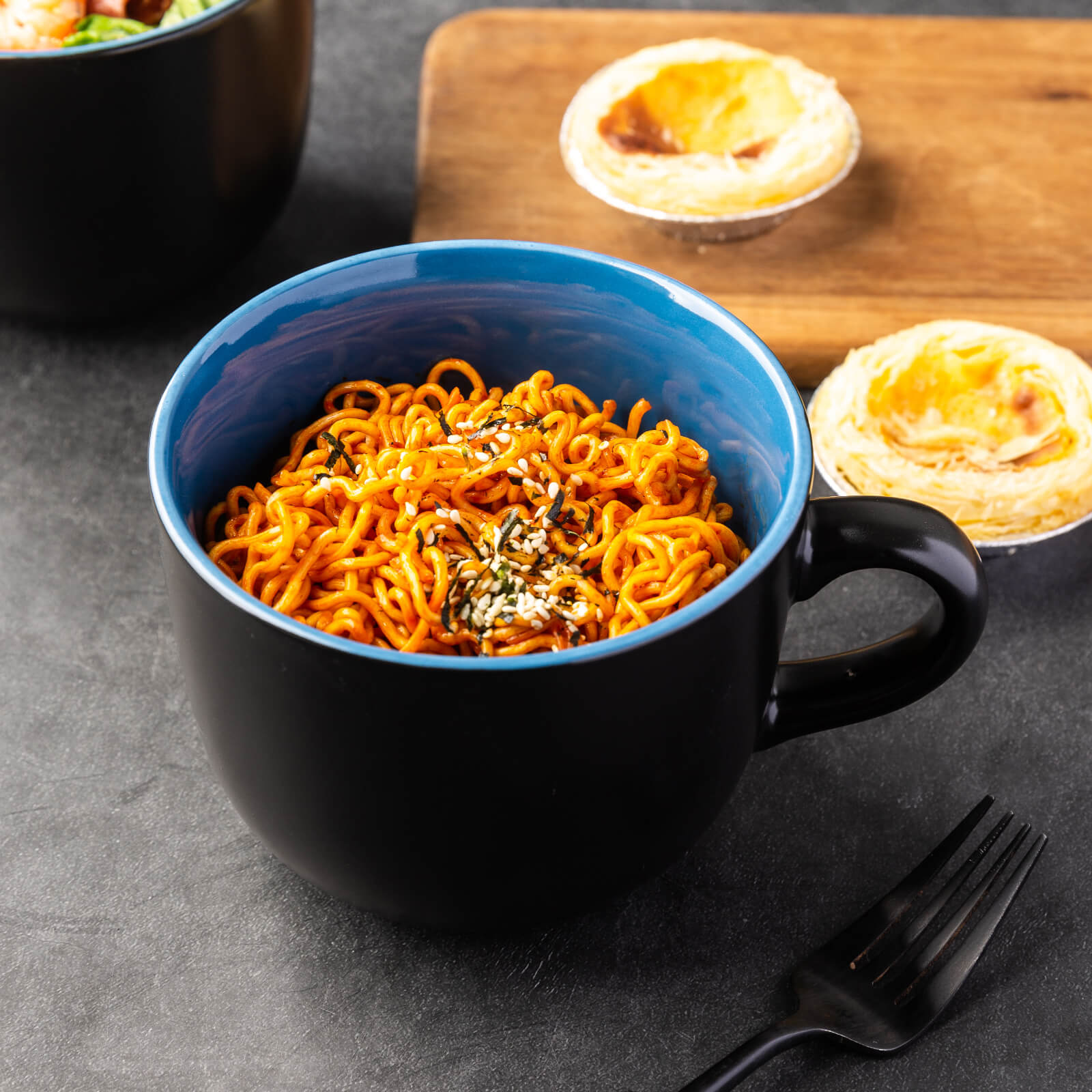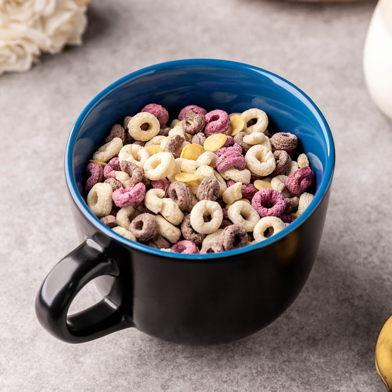 AmorArc Jumbo Coffee Mugs Set of 4, Large Ceramic Soup Mugs with Handles, 24 oz Large Soup Bowls for Coffee, Cereal ,Salad ,Snacks. Matt Black Outside, Bright Blue inside.…