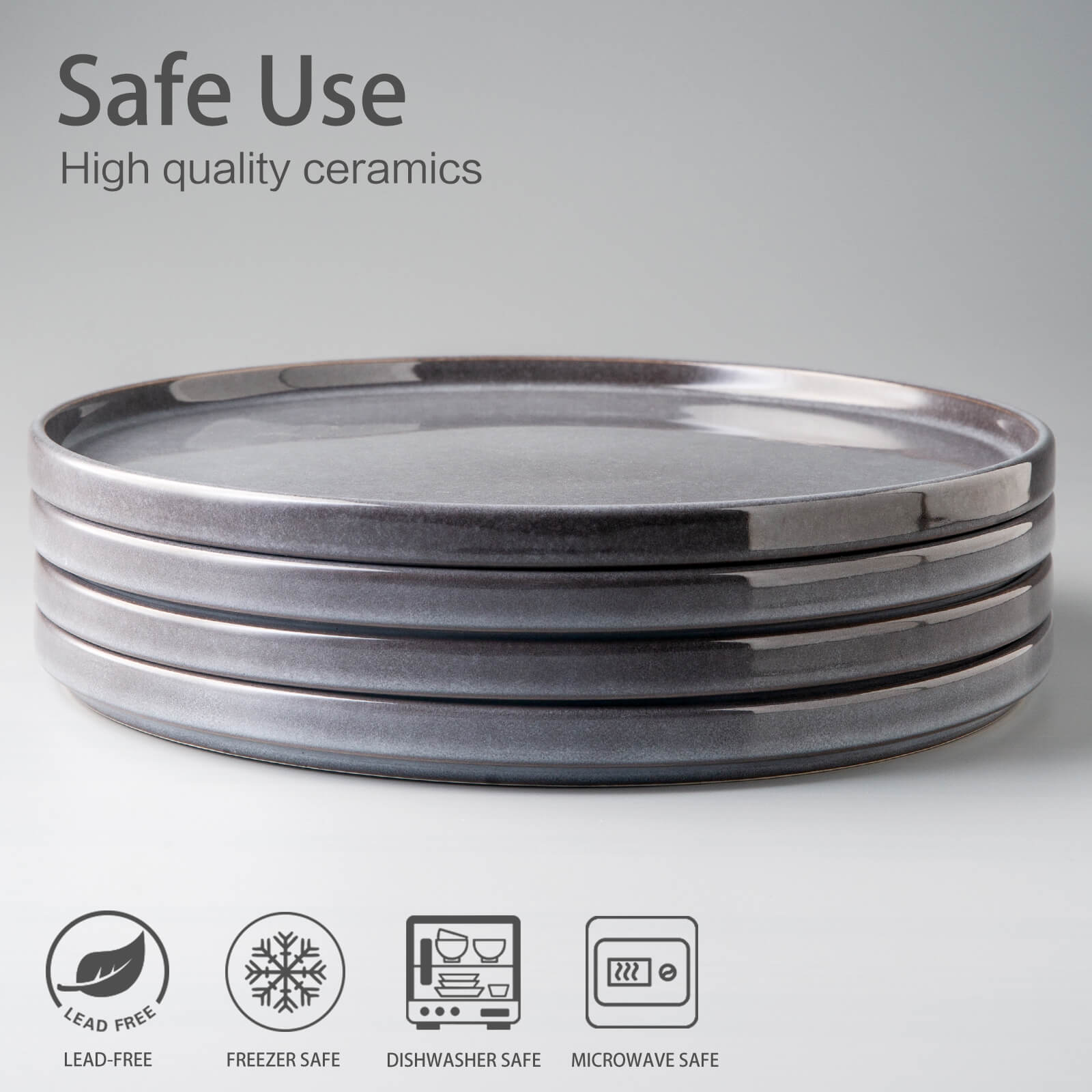 GBHOME Stoneware Dinner Plates Set of 4-Reactive Glaze Grey