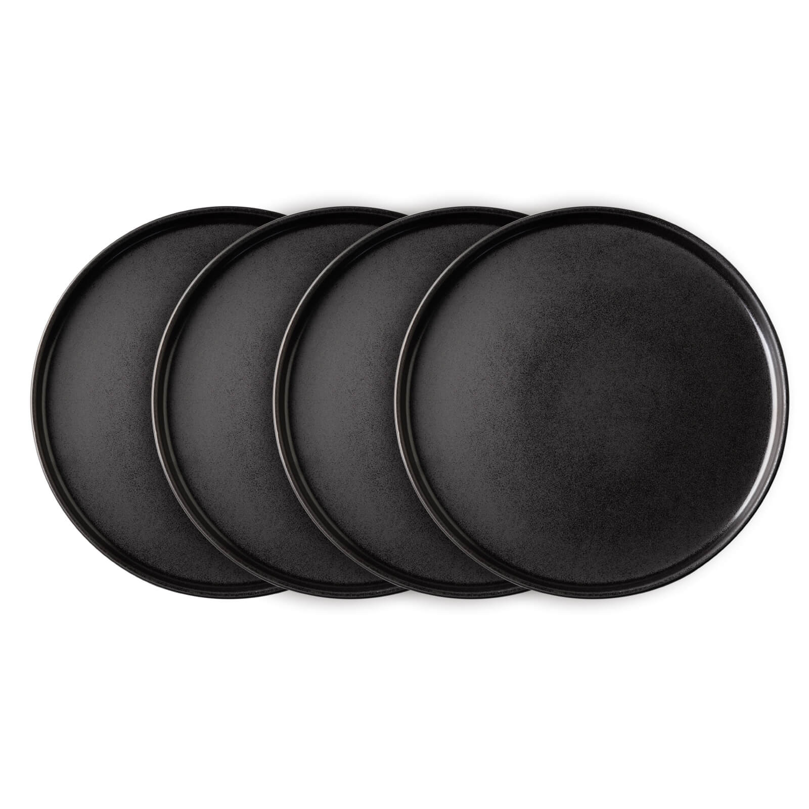 GBHOME Stoneware Dinner Plates Set of 4-Reactive Glaze Matte Black